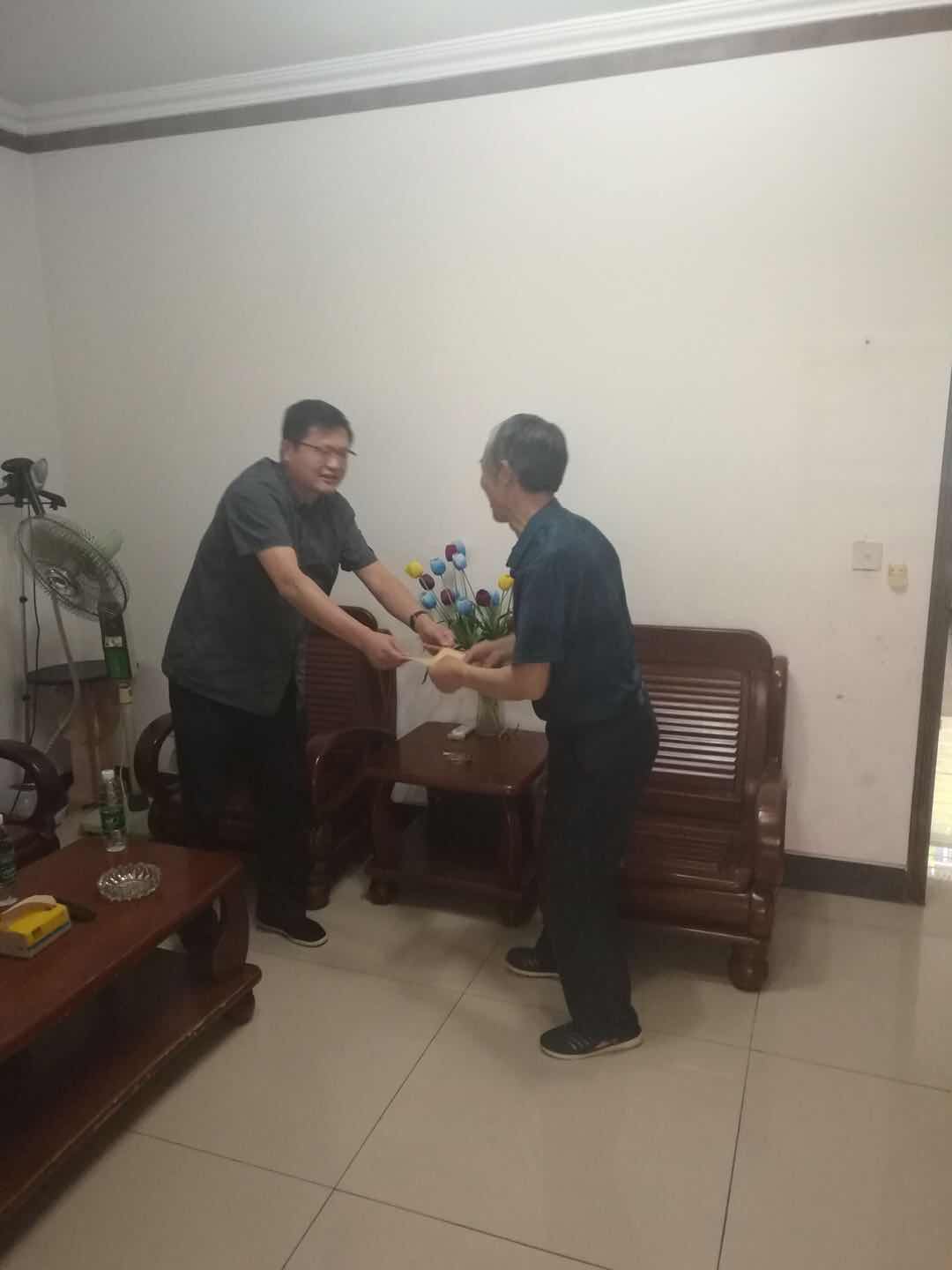 2019年6月28日,中荊集團(tuán)黨委書(shū)記、董事長(zhǎng)肖為代表集團(tuán)公司,分別走訪慰問(wèn)了原荊門(mén)市鋼制家具廠廠長(zhǎng)張敏同志和原湖北金宇水泥總廠副廠長(zhǎng)王云福同志,同他們親切交流,詳細(xì)詢問(wèn)了他們的家庭生活、身體狀況,并送去黨組織溫暖。肖董事長(zhǎng)叮囑相關(guān)負(fù)責(zé)同志,老干部們?yōu)槠髽I(yè)發(fā)展作出了積極貢獻(xiàn),為企業(yè)改制付出了心血,要多關(guān)心企業(yè)老黨員老干部,力所能及幫助他們解決實(shí)際困難,讓他們安度退休生活。